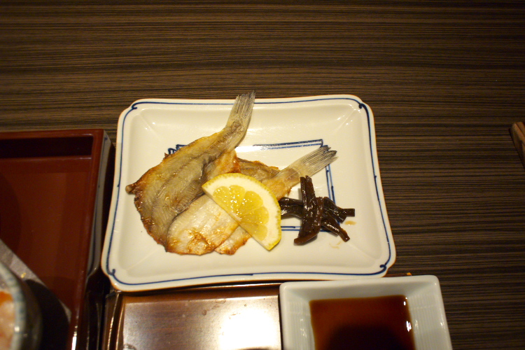 で、続いては朝食っす。会場は昨夜と同じ 「仁鶴−鶴+三郎」 っすな。 愛想のいい係のお姉さんも引き継がれるので、嬉しい限り。 で、中身のほうはというと、和食と洋食、好きなほうを選べて、更に和食の場合だと卵料理と魚料理をそれぞれ2種類からチョイスできるというシステム。 温泉玉子 or 出汁巻き玉子、鰺の干物 or カレイの干物。 そんな選択肢だったのではなかろうかと。 僕は出汁巻き&カレイを選んだんですが、その出来映えのほどはというと、