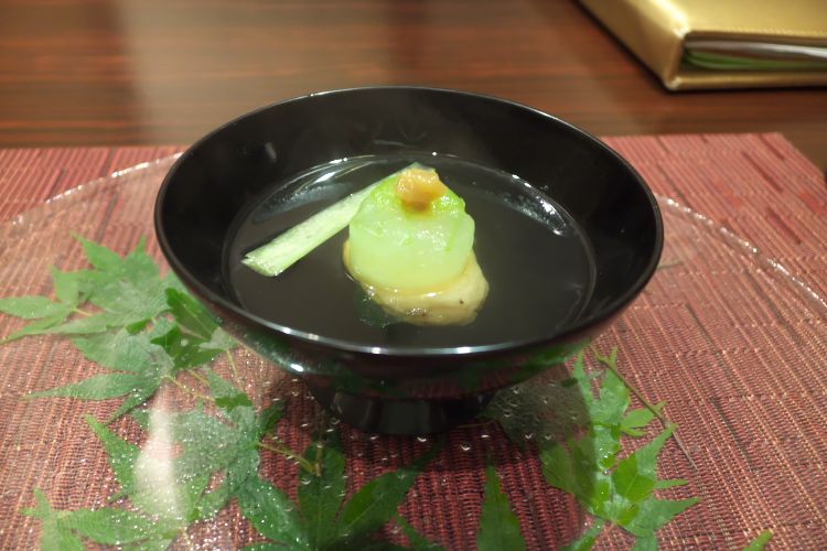 お吸い物。 あるいは、スープと言ったほうがいい、洋風の汁物だったかも知れませんが、詳細に関しては、忘れてしまいました。 で、これ、見た目は普通の汁物でありますな。 お味のほうは、普通に美味したっかものと思われます。 で、次。
