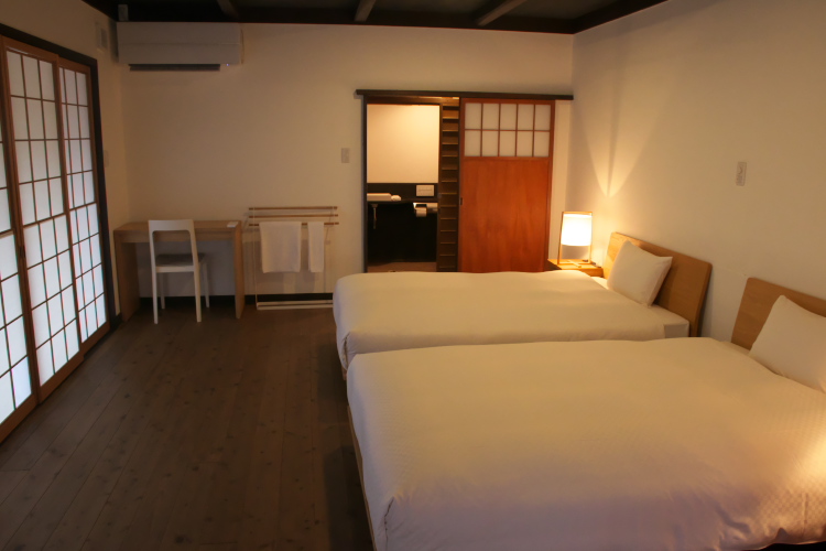 旧森川家住宅から各自の宿泊先までは、自力で歩いて移動することになります。 前日に泊まった ここ も、似たようなコンセプトの宿だったんっすが、チェックイン場所から各自の宿泊先まで、車で送ってくれたんっすよね。 ま、あっちは距離が離れていたし、こっちはそれほどでもないし、余裕で歩ける距離なので、ぜんぜん問題ないんっすが、こっちの宿はチェックインの手続き完了後は基本、放置される感じっす。 自由気ままっす。 んなことで、今回の宿泊場所、 “MOSO 棟” に到着〜。