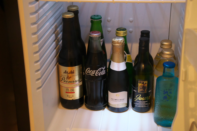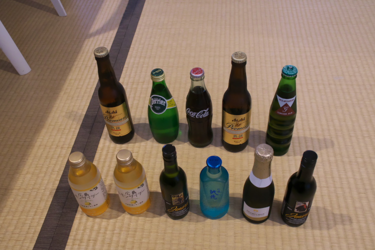 とりあえず、中身を外に出してみました。 ビールも、ワイン? も飲まないので、勿体ねぇ…。 とりあえず、広島レモンサイダー(1本)と、コカコーラと、ジンジャーエールは飲むとして。 本当はレモンサイダーは2本いきたいところなんっすが、特別室に泊まるような金持ちなのに、一人でサイダー2本、飲んじゃったのか。 さもしい。 そう、思われたりしても癪なので、泣いて馬謖を斬りました。 これ、そういう時に使う諺ではないような気もするんっすが、泣いて馬謖を斬る。 規律を保つために、たとえ愛する者であっても、違反者は厳しく処分することのたとえ、である。 やっぱ、違いますな。 レモンサイダーは別に、違反したワケではないっすからね。 一人でサイダー2本、飲んじゃったのか。 さもしい。 そう、思われたりしても癪なので、泣く泣く諦めました。 普通にそう書けばよかったんっすな。 んなことで、意味もなく、渡り廊下の先にひっそりと佇む二畳別室に寝転がったり、
