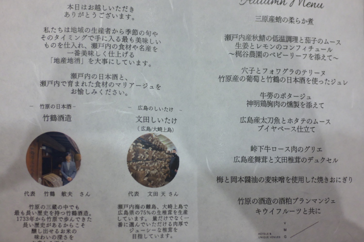 瀬戸内の自然と温暖な気候が育てた豊かな食材。そしてスイスのグランメゾンで活躍し、帰国後数々の賞を受賞した関西フレンチの重鎮が出会い、竹原の文化を伝える新たな料理を生み出します。 そういうアレらしいんっすが、いいっすな、フレンチの重鎮。 少なくとも、破廉恥なフリチンよりは期待が持てそうなんっすが、料理する時はパンツ穿けよ! そう、言いたくなりますもんね。 ま、料理をしない時も、風呂に入る時とか以外は、パンツは穿いたほうがいいと思うんっすが、ノーパン健康法 とか、あるじゃん! いや、ノーパンなのとフリチンなのは、また話が別で。 で、《平日限定》オールインクルーシブプラン。 夕食時のお飲み物も無料♪ ノンアルコールカクテル21種。 そんなふうに書かれていたので、めっちゃ楽しみにしていたんっすよね。 酒、あまり強くなくて、1杯くらいしか飲めないし。 飲み放題だからと言って、調子に乗って2杯飲んだりすると、気持ち悪くなって後悔することになるし。 が、オールインクルーシブプランの、お飲み物のメニューを見たら、ノンアルコールカクテルは3種類だけ。 ノンではないアルコール飲料も、何かあまりピンとくるものがありませんでした。 1杯くらいは “酒” を飲みたかったんっすが、