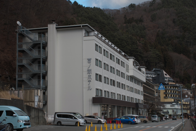 まあまあ、リーズナブルっすな。 夕食はバイキングで、あまり多くは期待出来そうにないんっすが、このロケーションで、お正月休み&お一人様で、このお値段なら、お得感があると言えるのではなかろうかと。 ちなみに、最上階ではないテラス付ではない部屋もあるんっすが、お値段は同じでありました。 最上階ではないお部屋は、旅館の定番の窓際の椅子とテーブルが置いてあるスペース = 広縁があるんっすが、最上階は広縁がない代わりにテラスがある。 全体の広さは同じ = お値段も同じ。 そういうシステムなんっすな。 僕は富士山&湖の写真を撮りたかったのでテラス付を選んだんっすが、冬に外とか、寒いじゃん! そういう人は広縁付の部屋を選べばいいじゃん! で、ホテルの外観は
