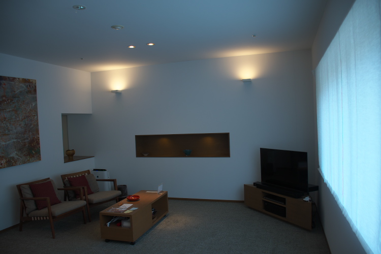 こんな感じ。 44平米なので広々。 で、小綺麗で、小洒落てますな。 で、窓から見える景色は