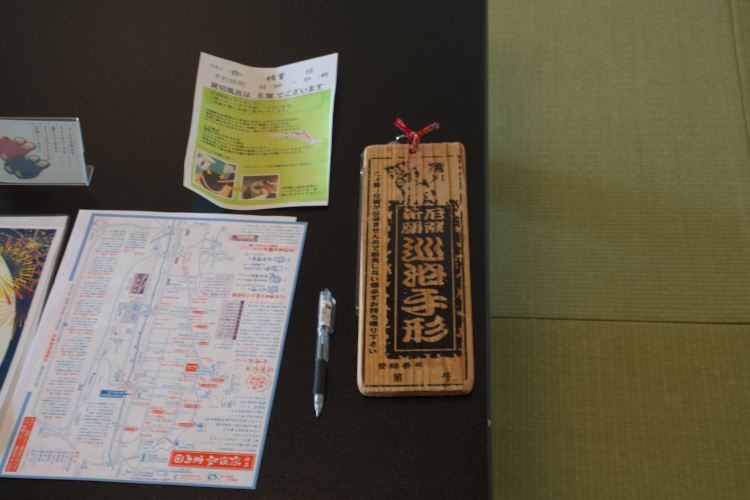 馬鹿デカい “巡浴手形” (…って書いてあるんか?) が。 この鍵を使って、外湯巡りが出来るんっすよね。 詳しくは先述の ここ を参照。 毎回開かされるので、別ウインドウで表示するようにしておきましたが、< 渋温泉散策 (夜編) > というところ。 話が先に進んでしまうので、後から見て貰うとして、で、窓から見える景色は
