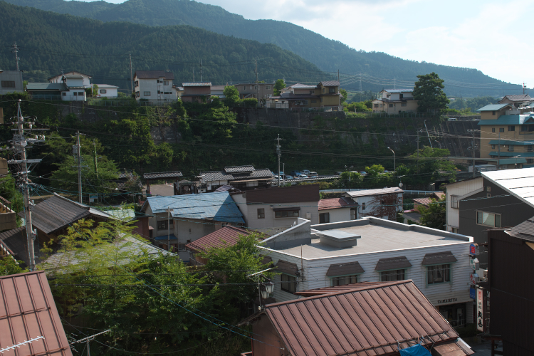 んなことで、バスから降りて、宿に到着〜。 今回は長野駅からではなく、志賀高原に寄ってから宿に向かったんっすが、散策が思ったよりもあっさり終わってしまって、想定していたバスより1本早い便に乗れてしまいました。 到着予定時刻は17:00と申告したんっすが、それより2時間も前にチェックインするのは、ちょっと…。 仕方ないので、一度、湯田中駅まで行って、折り返しのバスで宿に向かうことにしたんっすが、その辺りの状況は先ほどの ここ に書かれておりましたな。 で、宿の外観はこんな感じ。