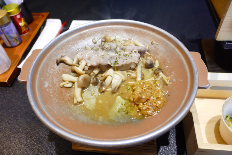 “強肴” の 「信州牛焼しゃぶ」。 固形燃料を使った陶板焼きではなく、(熱々溶岩石で焼く)。 熱々に熱せられた溶岩の上で焼きます。 おお、マジ、溶岩。 こんなんで焼けるんか? …と、ちょっと心配になるんっすが、だからこその「焼しゃぶ」 。 薄切りの肉なので、すぐに焼けちゃいます。 これなら「肉、ペラペラじゃん!」 と文句を言われても、「溶岩焼きですので。」 言い逃れ出来ます。 「溶岩だけに、よう噛んで食べんと。」 オッサンは、とっておきのギャグを披露することが出来るし、うまいこと考えましたなぁ。 実際のところ、南瓜や伏見唐辛子も普通に焼けたので、焼き溶岩のパワーは侮れなかったりするんっすが、穴が多いっすからね、溶岩。 ありきたりではない肉の焼き方で、楽しい、おいしい、いかめしい。 いや、イカ飯は関係ないっすな。 で、続いては